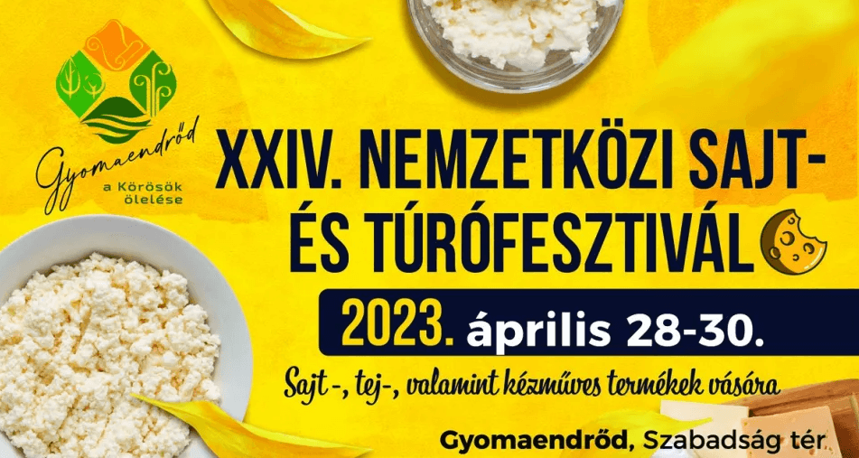 Idén már 24. alkalommal kerül megrendezésre városunk legnagyobb gasztronómiai eseménye a Gyomaendrődi Nemzetközi Sajt- és Túrófesztivál 2023. április 28-30. között. Sajtosok és kézművesek vásárával, sajtversennyel, 2023 darab túrógombóccal, kölyökszigettel és szórakoztató programokkal várjuk a kikapcsolódásra vágyó kedves vendégeket, turistákat!